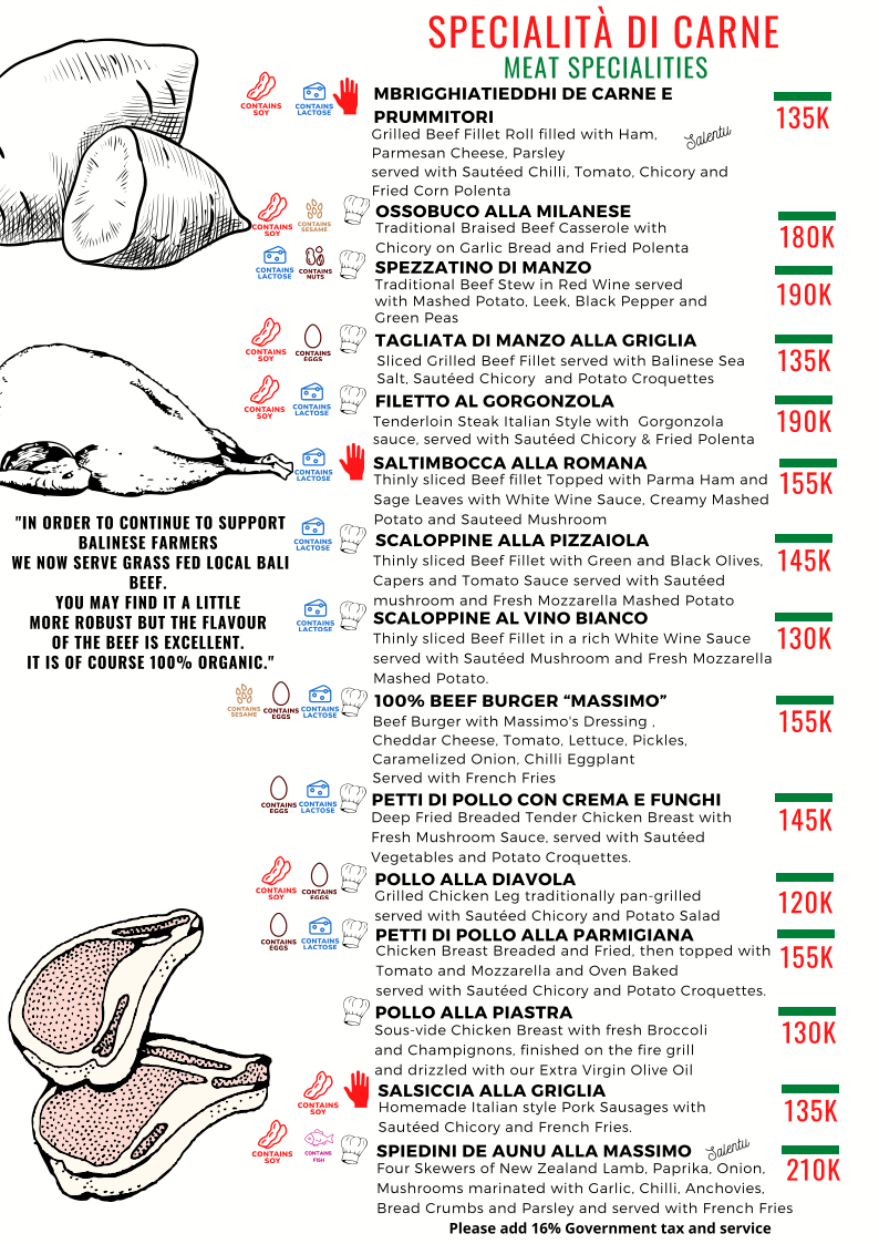 Welcome to Massimo Italian Restaurant, a culinary gem located in the heart of Sanur, Bali. Our menu features a delightful mix of traditional Italian classics and some local favorites, providing a unique gastronomic experience that caters to all palates.